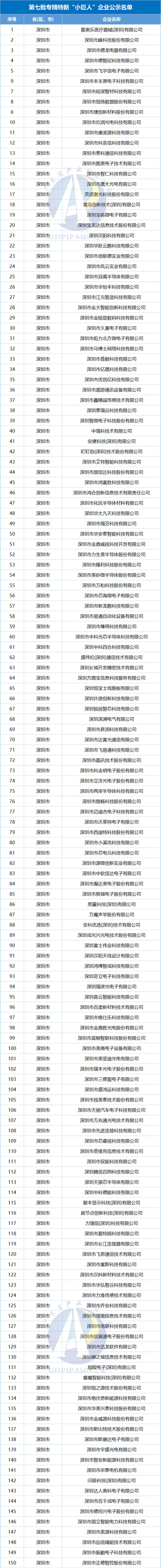深圳市中小企业服务局公示了《第七批专精特新“小巨人”企业和2025年专精特新“小巨人”复核通过企业名单》,拟新增企业347家,通过复核246家。